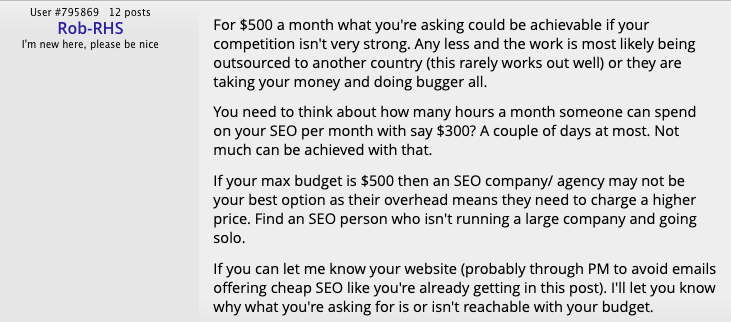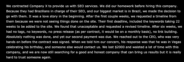 We looked for real commentary from business owners about their experience - specifically in regards to cheap/affordable SEO offerings.