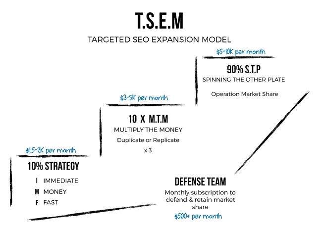 We call it our "Targeted SEO Expansion Model" and it works in 3 stages.